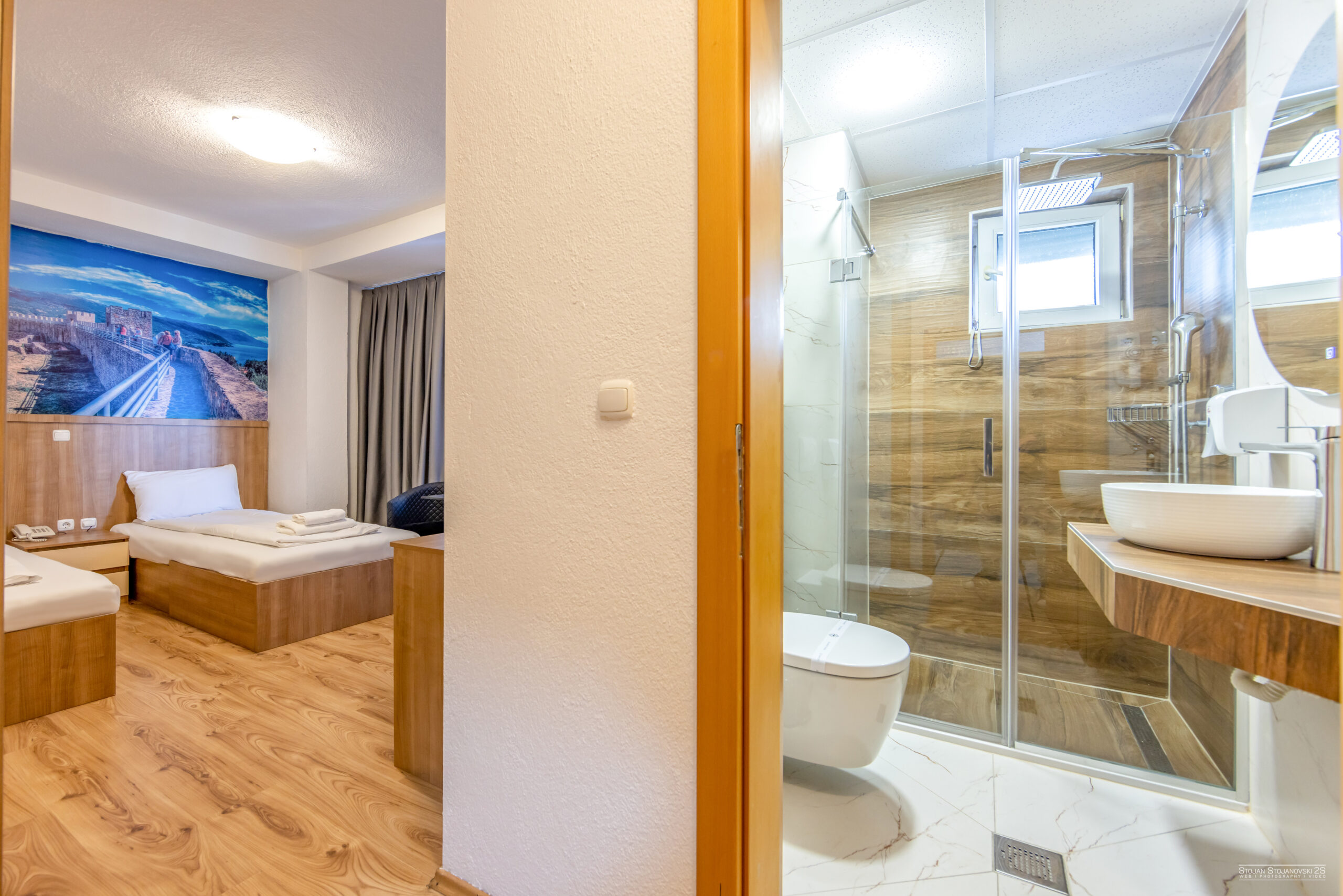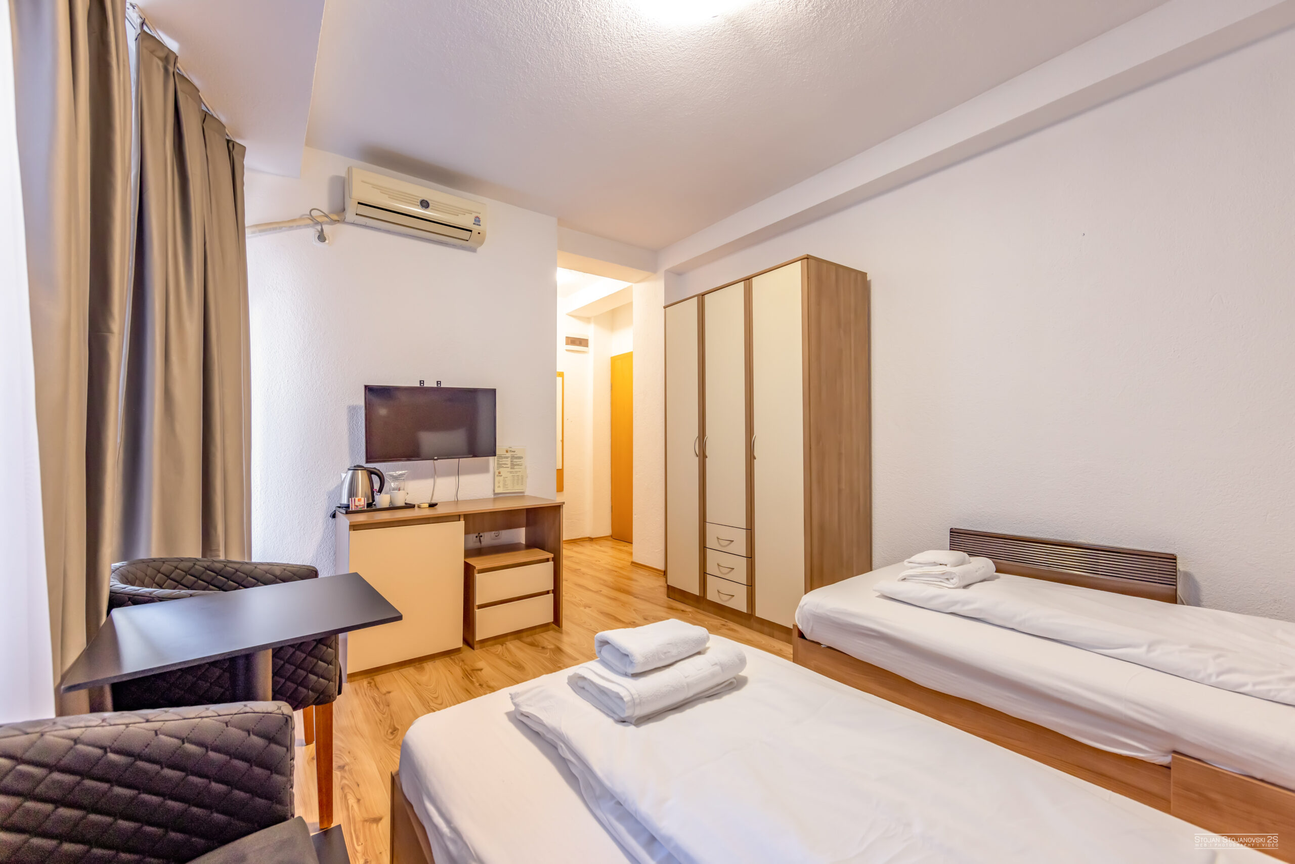 Features: single bed, air conditioning, fridge, flat-screen TV, private bathroom.